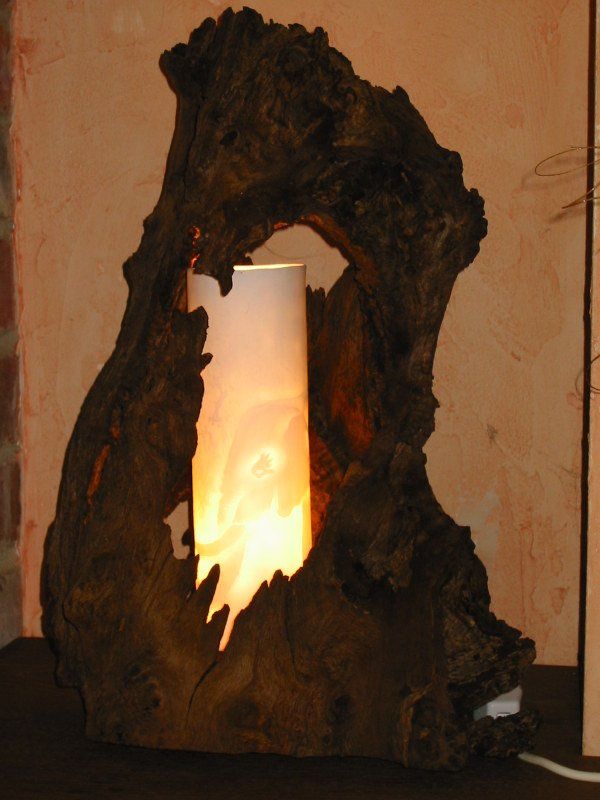 Porcelain lighting on driftwood